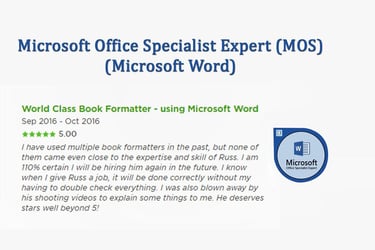 "It was great to work with Russ and will definitely be working with him again. Very knowledgeable, and during the job he taught me a thing or 3! Exceptional eye to detail. Very skilled with Microsoft Word and Adobe which was used on the project. Exceptional literacy skills. Very Knowledgeable and experienced in regards to Quality Management and structure. Assisted in guiding the project to completion, and suggested pivotal improvements. 10 out of 10 - Very impressed."