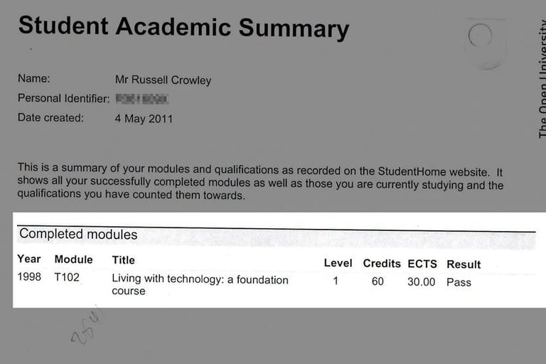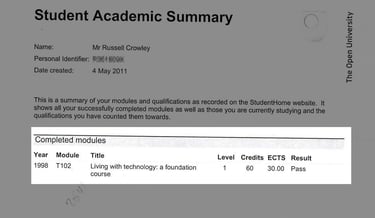 Back to studying, it was the City & Guilds 236 in Electrical Installation course. Then 'T102 - Living with technology', an Open University Foundation Course.